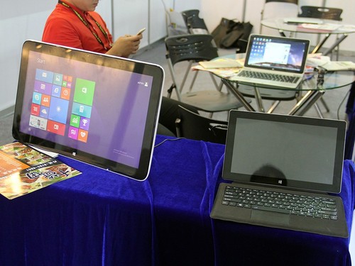 中关村在线报道:在COMPUTEX 2015展会中我们看到了不少电脑厂商带来新产品,其中在中柏展台我们看到了多款电脑设备,其中包括一体机AIO、二合一电脑以及平板电脑等设备。