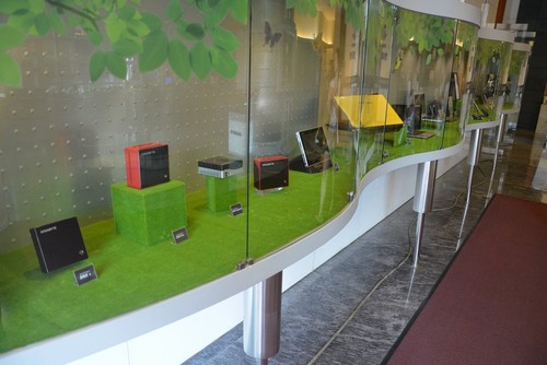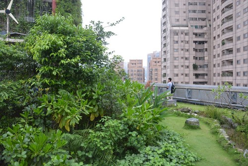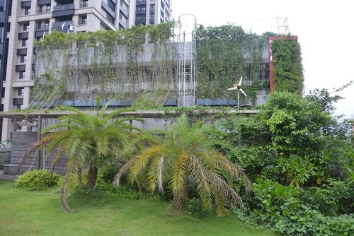相比之前来到技嘉台北总部有所不同,本次技嘉总部可不仅仅是更换了大厅中展示窗中的展品,更有意思的给我们带来了“永续生态”的理念,意在为城市构造的水泥世界中,开创一条绿色生态走廊。下面笔者就放出到访的实际拍照高清大图,很难想到在毫无生机的高楼上,还有这么一片生机盎然的绿景。